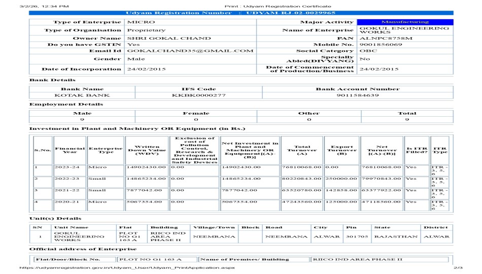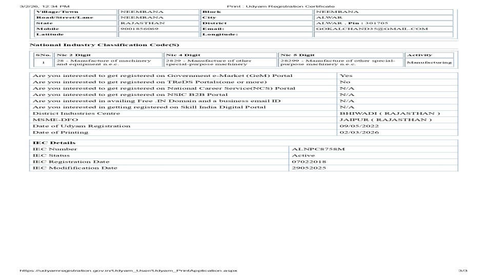 Udyam Registration Certificate 3